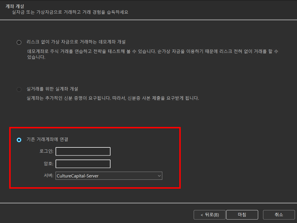 회원가입과 MT5 계정 개설이 모두 완료되면